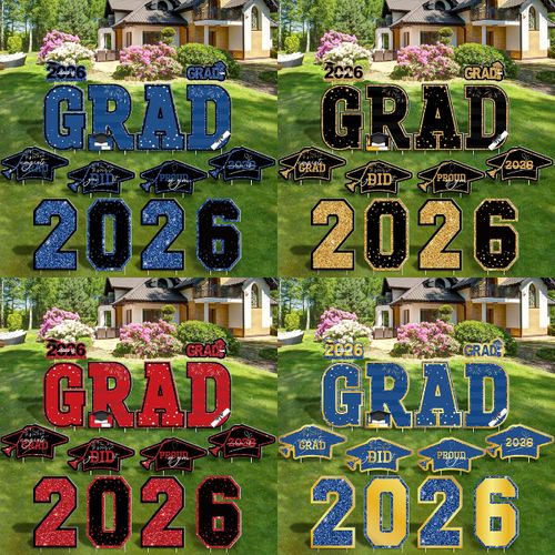 HOVACY Graduation Yard Signs celebrate your Class of 2026 in style with vibrant blue and gold colors. 🎓 14 pieces, waterproof material, and includes stakes for easy outdoor display. 🏡🎉