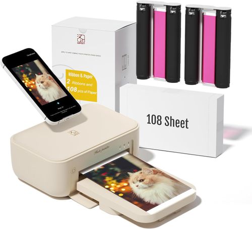 HPRT 4×6 Photo Printer 🖨️ Wireless photo printer for iPhone and smartphones, uses thermal dye-sublimation printing and includes 108 sheets of photo paper with 2 ribbons—perfect for high-quality 4×6 prints. Color: Beige 💖📸.