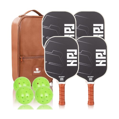 HUDEF USAPA Pickleball Paddles Set serves up fun and performance 🏓 Graphite & fiberglass honeycomb core, 4 outdoor balls, PU leather carry bag for easy transport 🎒💪