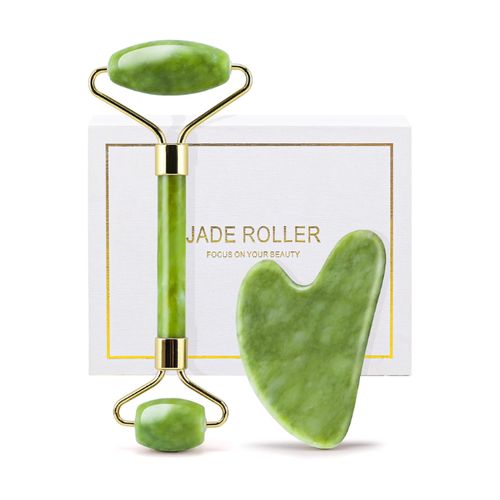 huefull Genuine Jade Roller & Gua Sha Set 💚✨ elevates your skincare routine! ❄️ Cooling effect, firms skin, and sculpts jawline beautifully. 💆♀️