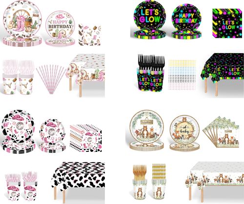 Party made EASY! 🎉 This Hukalw All-In-One Disposable Party Set = plates, napkins, tablecloth, banner & cake topper! 🎂