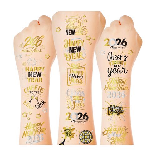 Huskein New Years Eve Party Supplies glitter tattoos elevate celebrations. 🎉135 styles, black gold silver, perfect 2026 NYE favors party.