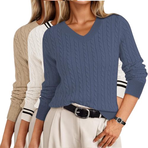 IEEILULU Cable Knit Sweater delivers cozy everyday style. 🧶 V-neck, long sleeves, soft pullover perfect for casual trendy outfits daily wear.