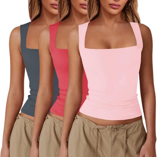 Imily Bela Square Neck Tank Top keeps summer outfits trendy ☀️. Slim fit, cropped style, perfect for casual outings 💖.