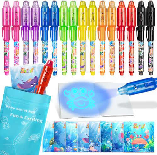 InkSlick Invisible Ink Pens let kids write secret messages 🖊️ 16-pack with UV light and notebook, perfect for spy play, birthday gifts, and party favors 🕵️♂️🎁