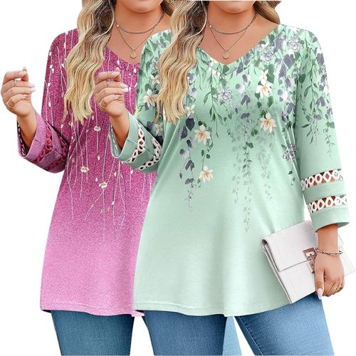 IN'VOLAND Plus Size Tops offer stylish comfort for all-day wear 👚 3/4 sleeves, V-neck design, loose summer fit for business or casual occasions 💼🌸
