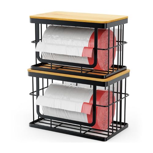 iSPECLE Garbage Bag Dispenser keeps trash bags neatly organized anywhere. 🗑️ Bamboo top, easy install, pulls one bag at time smoothly. 🌿