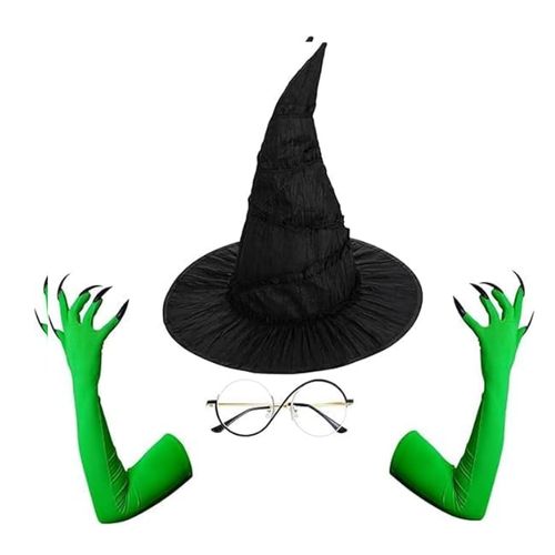 Iyrtss Halloween Witch Costume Set 🧙♀️🎃 makes dress-up magically fun! Includes witch hat, green claw gloves, glasses, and full cosplay kit. 🕸️🪄