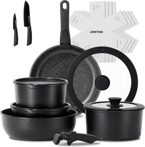 Cook like a pro with JEETEE’s 17-Piece Non-Stick Set! 🍲 Detachable handles, oven safe, and perfect for any kitchen or RV. 🔥