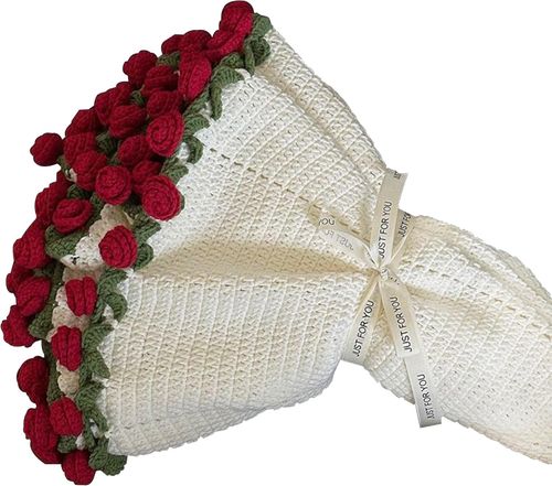 JFUJFU Handmade Roses Flower Bouquet Blanket