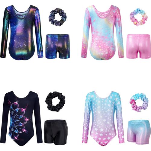 JiAmy Girls Gymnastics Leotards! 💖 Dance, tumble, shine! Stylish cross-back leotards + shorts for 3-12 yrs. 💃
