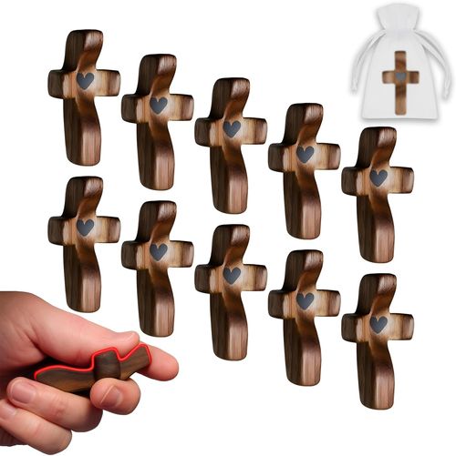 Find your calm, share your faith! ✝️ JimSeiSei 10-Pack Wooden Prayer Crosses – perfect for pocket comfort, anxiety relief, or gifting this Easter & Christmas. 🙏