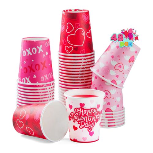 JOYIN 48 Pcs Valentine's Day Disposable Cups make drinks extra festive 🥤❤️ 9 oz size, pink-red heart design, perfect for parties, birthdays, and weddings 🎉