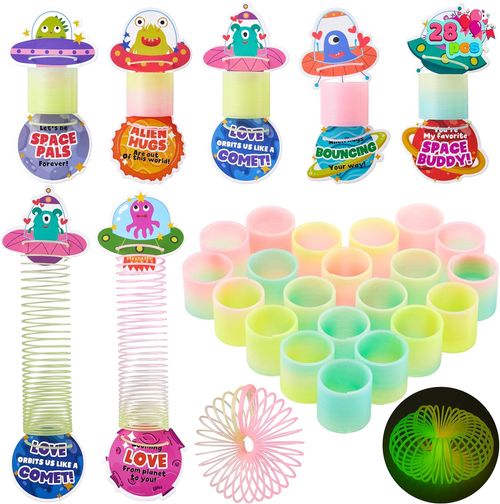 JOYIN Valentine’s Day UFO Alien Fidget Coil Springs bring fun and stress relief 👽 28-pack, glow-in-the-dark, perfect for kids, classroom prizes, and Valentine’s Day gifts 🎁💖