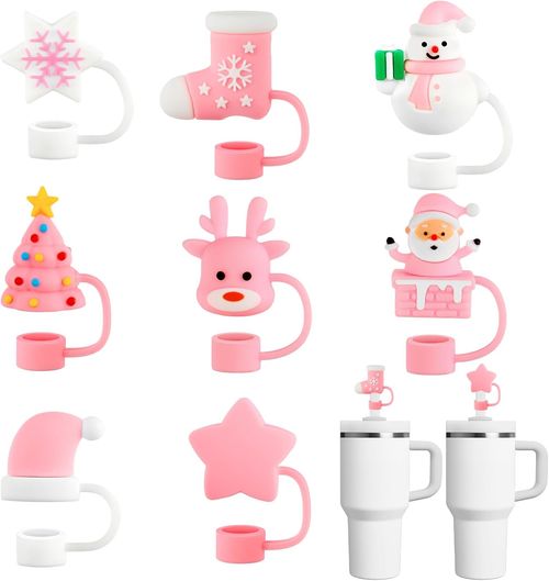 Jutieuo Christmas Straw Toppers for Stanley Cups add festive charm ππ 3D pink designs, snug 10mm fit, reusable holiday décor cute π