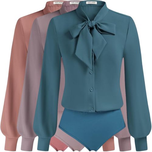 Kate Kasin Office Blouse! πŸ‘š Elegant bow-tie neck with button-down long sleeves, bodysuit-style fit perfect for office and polished dressy looks! πŸ’ΌπŸ’–πŸŒΈ