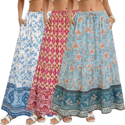 Kate Kasin Summer Boho Maxi Skirt! 🌺 Floral flowy long skirt, beach vacation outfit, trendy 2026 style, with functional pockets 🏖️