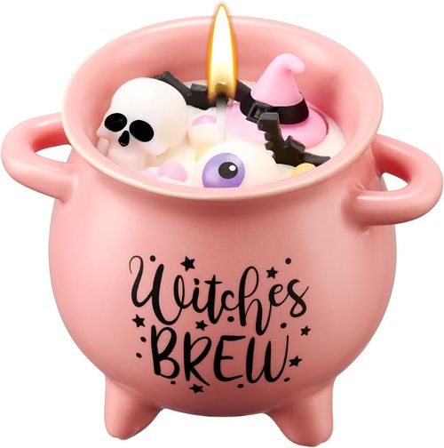 Kederwa Pink Boo Basket Stuffers! 💖 Includes a 14oz pumpkin-scented candle, witches cauldron jar, and cute pink Halloween decor perfect for indoor vibes. 🕯️🧙♀️👻