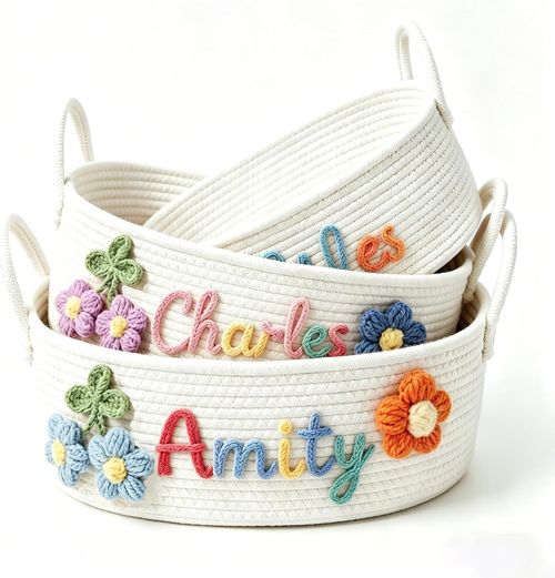 KEQHAULI Personalized Storage Basket! ๐Ÿงบ Custom name cotton rope organizer, perfect for nursery, diaper caddy, keepsakes, and thoughtful gifts for mom or grandma! ๐Ÿ’–๐Ÿก