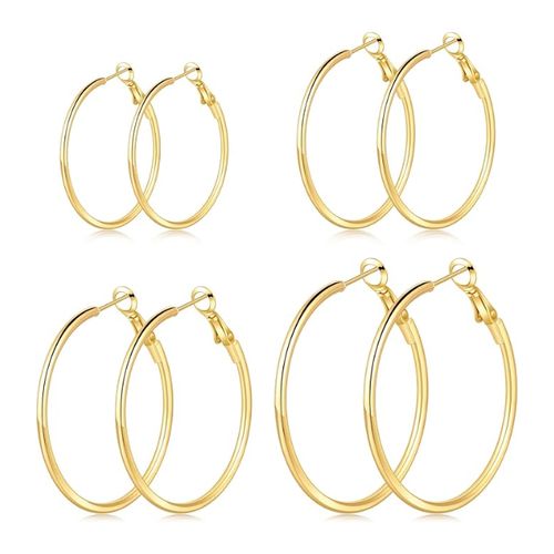 Kiiowana Gold & Silver Hoop Earrings 💛 stylish, lightweight, and hypoallergenic. 14K gold plated, stainless steel, 4–6 pairs, thin 2mm hoops, multiple sizes 30–60mm.