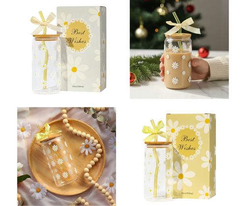 Sip in style! ☕ The KMCCUMBER Cute Glass Cups with Lid & Straw are perfect for iced coffee, daisy vibes, and gifting your favorite coffee lover! 💛