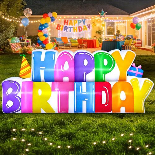 KOOY 8FT Inflatable Happy Birthday Banner! 🎈 Built-in LED lights make it glow day or night—perfect for outdoor or indoor celebrations. 🎉