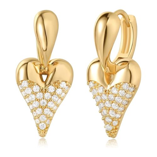 LADYGD Gold Huggie Hoop Earrings 💖 dazzle with elegance! 14K gold-plated, cubic zirconia hearts, hypoallergenic—perfect gift for women 🎁👩🦰💎.