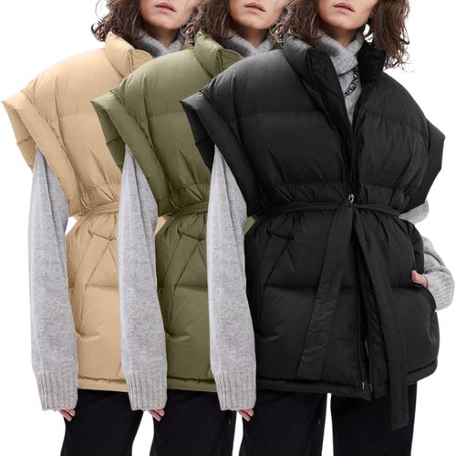 Langwyqu Oversized Puffer Vests. 🧥 Stand collar, a full zipper closure, and include a flattering belt detail. 🧣