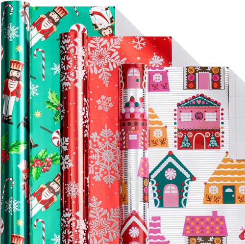 LeZakaa 3 Mini Rolls Christmas Wrapping Paper! 🎁 Make every gift sparkle. Metallic foil & cute designs! 🎄