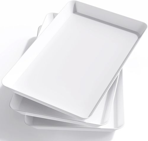 Lifewit Reusable Plastic Serving Tray Set! 🍽️ This set includes three 15" x 10" white, BPA-free rectangle platters, perfect for serving snacks, food, and cookies at home or outdoor parties. 🎉
