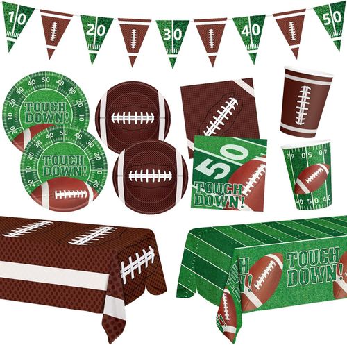 Litmitfu 99PCS Football Party Set! 🎉 Everything you need for gameday. Plates, cups, banner & more! 🏈