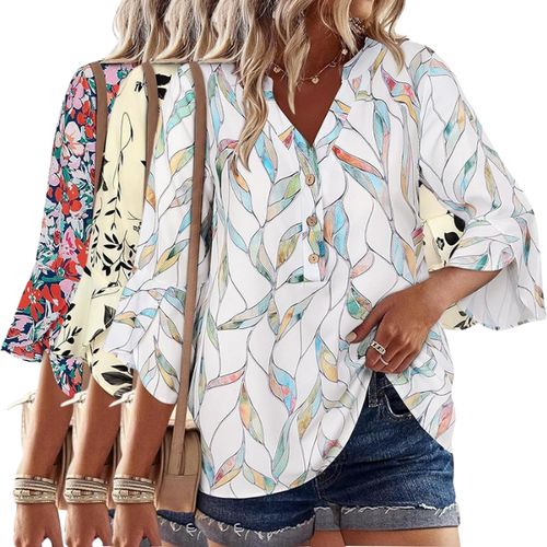 LOOKBOHO Boho Top adds stylish flair to your fall wardrobe.  Ruffle bell sleeves, V-neck button design, and perfect for casual or business looks! 🍂💖