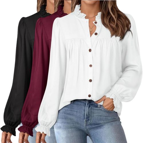 LOOKBOHO Button Down Shirts ππ combine elegance and retro style! Long puff sleeves, pleated design, perfect for business or casual fall outfits πΌπ.