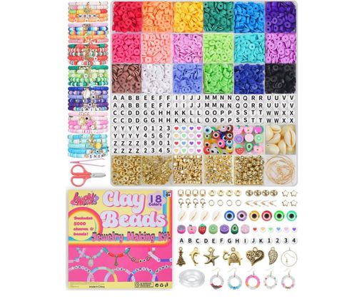 LovelyMoon Clay Beads Bracelet Making Kit , 18 curated colors of flat polymer clay heishi beads, providing everything needed to craft professional-looking friendship bracelets, necklaces, and anklets. 🌈📿