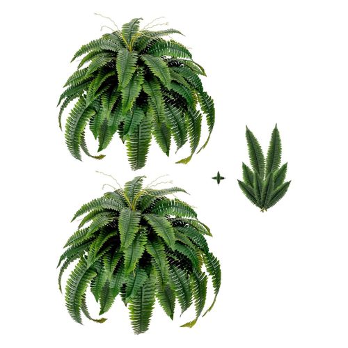 LuceAlberi Artificial Boston Fern Bush adds lush greenery anywhere. 🌿 Two packs 45-inch faux ferns with 55 fronds indoor outdoor decor. 🪴🏡