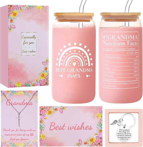 LusterStar Grandma Gifts celebrate love from grandkids ❤️ 16oz “Best Grandma Ever” glass cup, perfect for birthdays, Christmas, or Mother’s Day 🎁☕