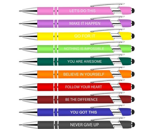 Luxeviss 10 Pcs Inspirational Pens 🖊️ inspire every note! Motivational quotes, smooth black ink, and stylus tip perfect for school, office, or thoughtful gifts 🎁📚💼.