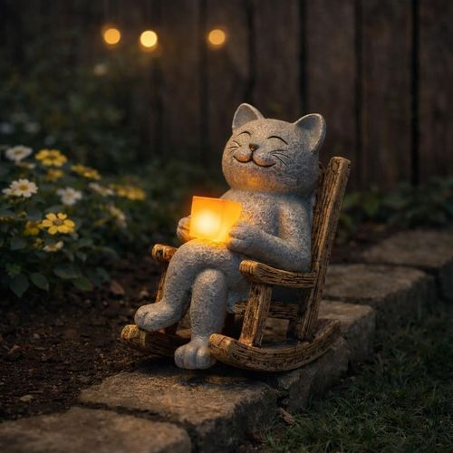 Lyeasw Cat Solar Garden Statues! 🐱 Miniature Cute Cat Outdoor Figurine with LED Lights Outdoor decor LED lights perfect cat lovers! 🌿