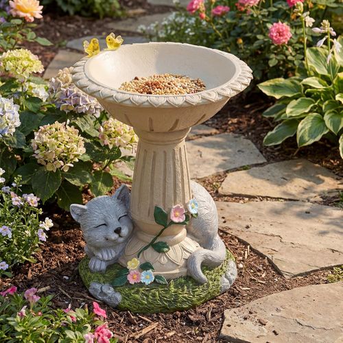 Lyeasw Cat Statue with Bird Feeder 🐱 Weatherproof resin outdoor statue with solar-powered bird feeder—perfect for patios, lawns, or porches and a unique gift for bird lovers, moms, grandmas, or women 🌿🏡💖.
