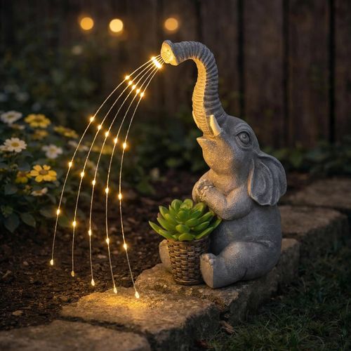 Lyeasw Solar Garden Decor Elephant Statues add charm to any outdoor space 🐘 Water-resistant, solar-powered auto on/off lights, perfect for patios, yards, porches, or gifting 🌞