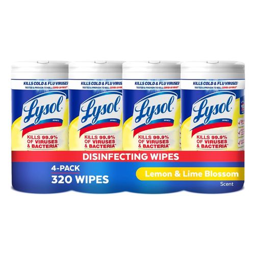 Lysol Disinfectant Wipes (Pack of 4)! 🍋 Multi-surface, antibacterial, and fresh Lemon & Lime Blossom scent. 🖤
