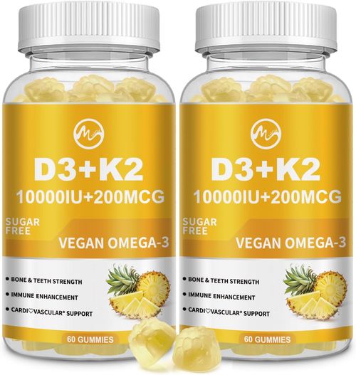 Strong bones, healthy teeth! 💊 Enjoy these M inch Vitamin D3 + K2 Gummies with Magnesium, Calcium & Omega-3. 🌿