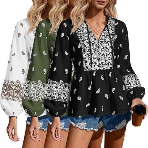 MASCOMODA Boho Babydoll Tops are flowy V-neck blouses perfect for spring summer vacations! πΈπ Peplum style, lightweight fabric, relaxed fit! π