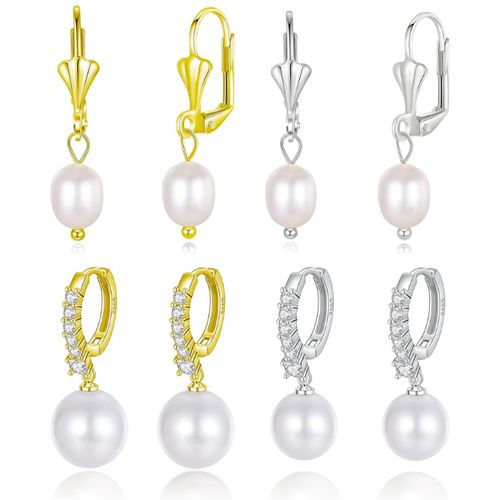 MEJEYSP Pearl Earrings 🤍 elegant 925 sterling silver drop design. White gold finish, cubic zirconia accents, large 10–12mm pearls—perfect gift for mothers.