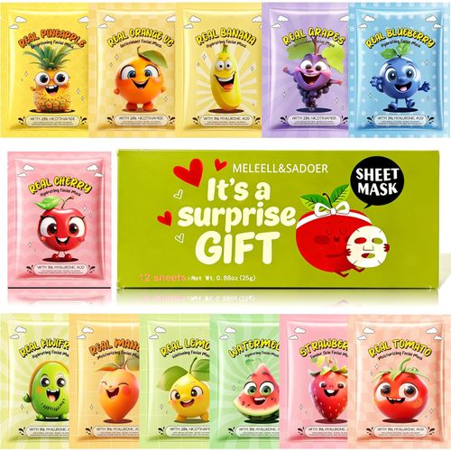 Meleell Collagen Face Masks hydrate and pamper your skin 🍓12-sheet fruity set, gentle for sensitive skin, perfect for teens and women 💖🧖‍♀️