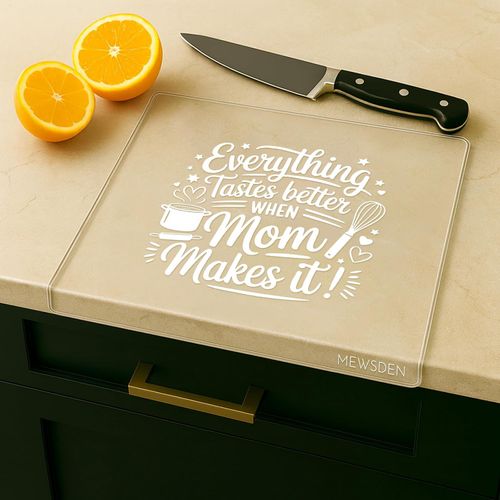 MEWSDEN Acrylic Cutting Board makes loving gift for Mom. Engraved design counter lip clear aesthetic daily kitchen use thoughtful decor. 🎁💐🍽