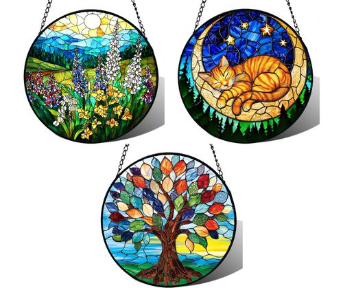 Turn sunlight into magic! 💛 This Meyocky Stained Glass Tree of Life Suncatcher fills your space with dreamy rainbow vibes! 🌈