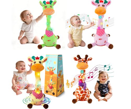 MIAODAM Dancing Giraffe Interactive Toy provides a playful way to entertain and engage your toddler. 🦒 This green plush includes ten built-in children's songs, a colorful glowing effect, and a fun recording function that repeats spoken words. 🎶