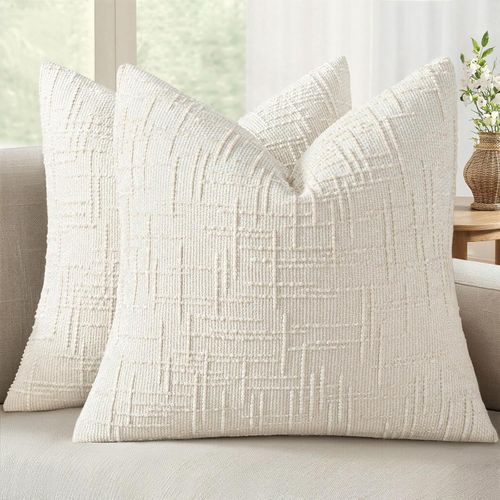 MIULEE 18x18 Inch Set of 2 Textured Throw Pillow Covers! 🛋️ Soft, neutral, and totally “Pinterest-worthy” vibes for your sofa or bed! 🤍