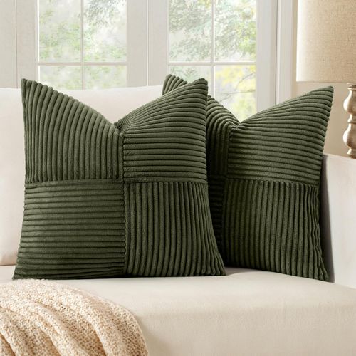 MIULEE Olive Green Decorative Throw Pillow Covers 🛋️🌿 add cozy style to any room! 18x18 inch, soft cross corduroy patchwork, and perfect for spring, boho, or farmhouse decor—pack of 2 💖🏡.